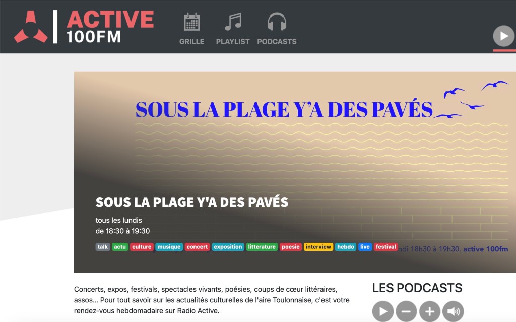 Les Cigales à l’antenne sur Radio active lundi 11 novembre à 18h30 dans l’émission Sous la plage y’a des pavés pour parler de nos deux nouvelles créations http://www.radio-active.net/podcast-sous-la-plage-y-a-des-paves-11305