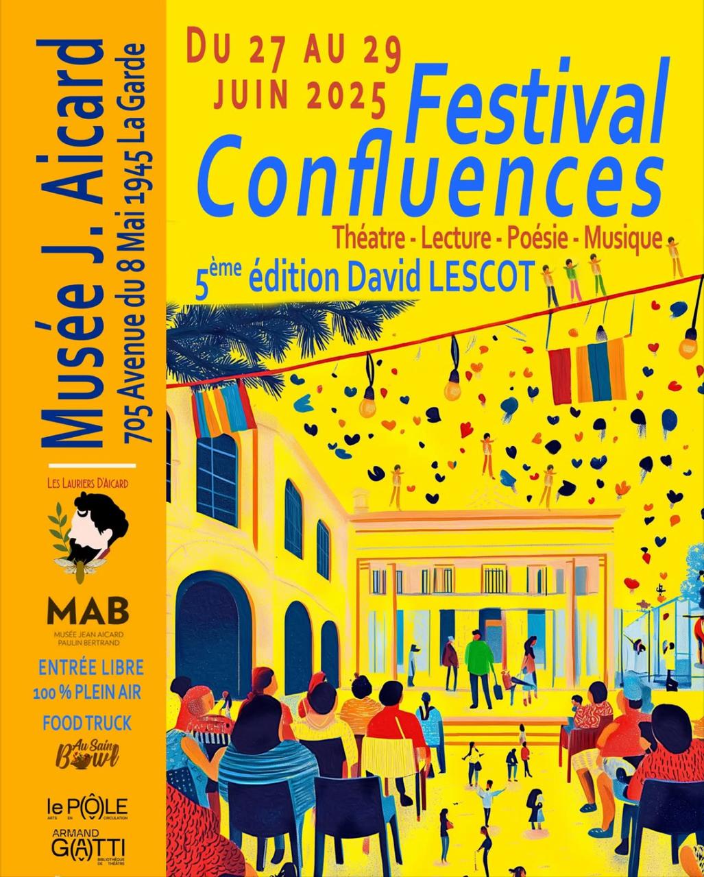 La cinquième édition du Festival Confluences sera dédiée au théâtre de David Lescot. Singulier et riche, le festival offre du 27 au 29 juin 2025 une parenthèse de bien être, théâtre, lecture, poésie, musique et photographie au Musée Jean Aicard à La Garde (83).