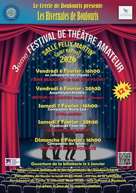 Merci beaucoup au Cercle Boulouris, à la Ville de Saint-Raphaël, aux régisseurs de cette belle salle Félix Martin et au public nombreux et ravi pour leur accueil chaleureux.