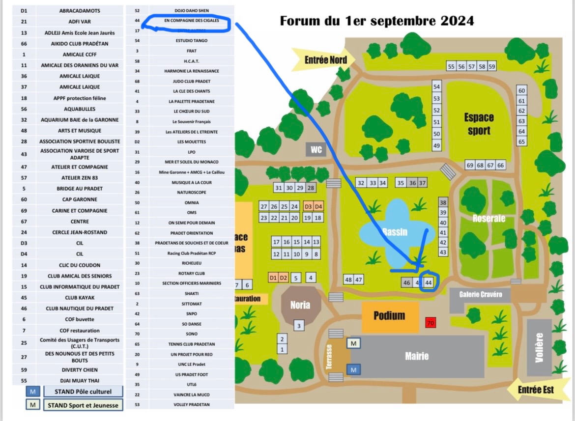 Comme chaque année, nous aurons le plaisir de vous rencontrez sur notre stand lors du traditionnel Forum des associations. Dimanche 7 septembre à partir de 10 heures dans la dans le parc Cravero.